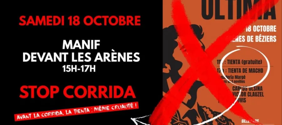 15:00 – 17:00 Manifestation sur le parvis des arènespour dénoncer un spectacle de « tienta de macho ». Dans le cadre des Journées taurines de Béziers, une « tienta de machos » est organisée dans