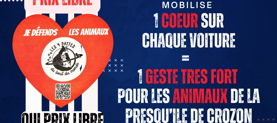 #1CoeurPourLesAnimauxCet événement est unique : 1 cœur par voiture en Presqu’île de Crozon, pour montrer que nous sommes nombreux à prendre soin des animaux et à défendre leurs droits. Chaque sticker