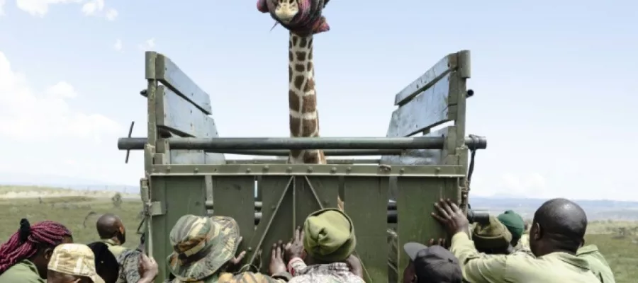 Tirée par des longues cordes aux mains d’une vingtaine de rangers, la girafe aux yeux bandés entre dans une remorque aux ridelles rehaussées, qui va l’emmener hors d’une zone naturelle devenue hostile de la vallée du Rift, une opération complexe de plus en plus fréquente au Kenya.